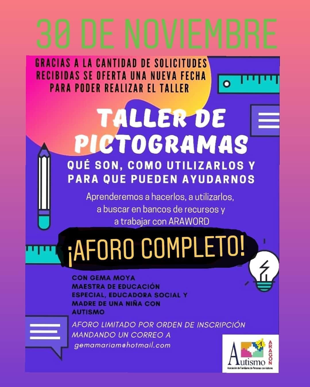 ¡De nuevo colgamos el cartel de aforo completo para el segundo día de nuestro taller de pictogramas!