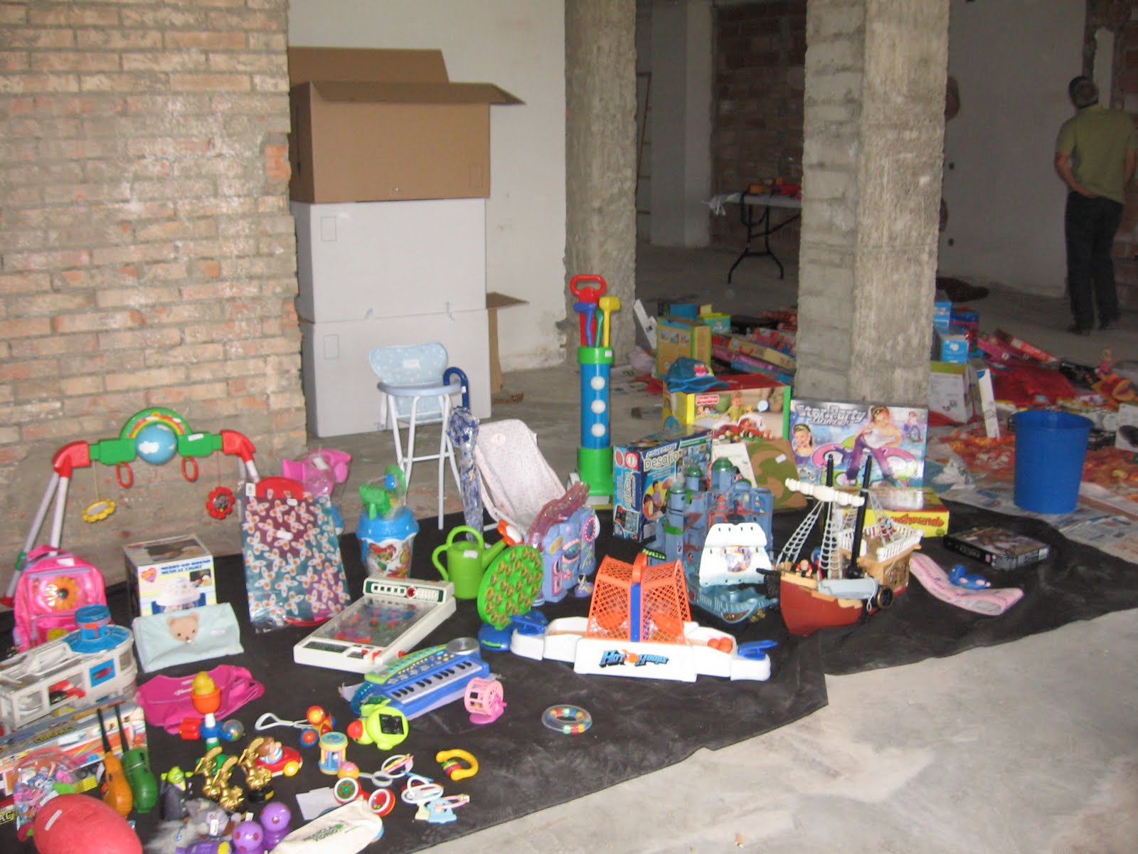 Este mes de junio y por primera vez, decidimos hacer un mercadillo, primero pensamos en juguetes, pero poco a poco nos fuimos convirtiendo en un «centro comercial» libros, joyas, cosas del hogar, pijamas…. Mucha gente se animó a traer cosas y algunas empresas de nuestra capital, IMAGINARIUM, EL CORTE INGLES, UDE, TOY´S ARUS… mención especial a varias pequeñas tiendas de las Fuentes que dieron a Carol un montón de cosas (no tengo los nombres de estos negocios, y Carol está de vacaciones, pero en septiembre los pondré con letras bien grandes). En total se han donado 1.359,50 € !un éxito! EN DICIEMBRE VOLVEREMOS con la lección aprendida y turnos organizados como Dios manda.