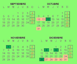 Éste es el calendario con las vacaciones que habrá en la Asociación desde que comencemos el curso hasta finales de diciembre. Permaneceremos cerrados las siguientes fechas: