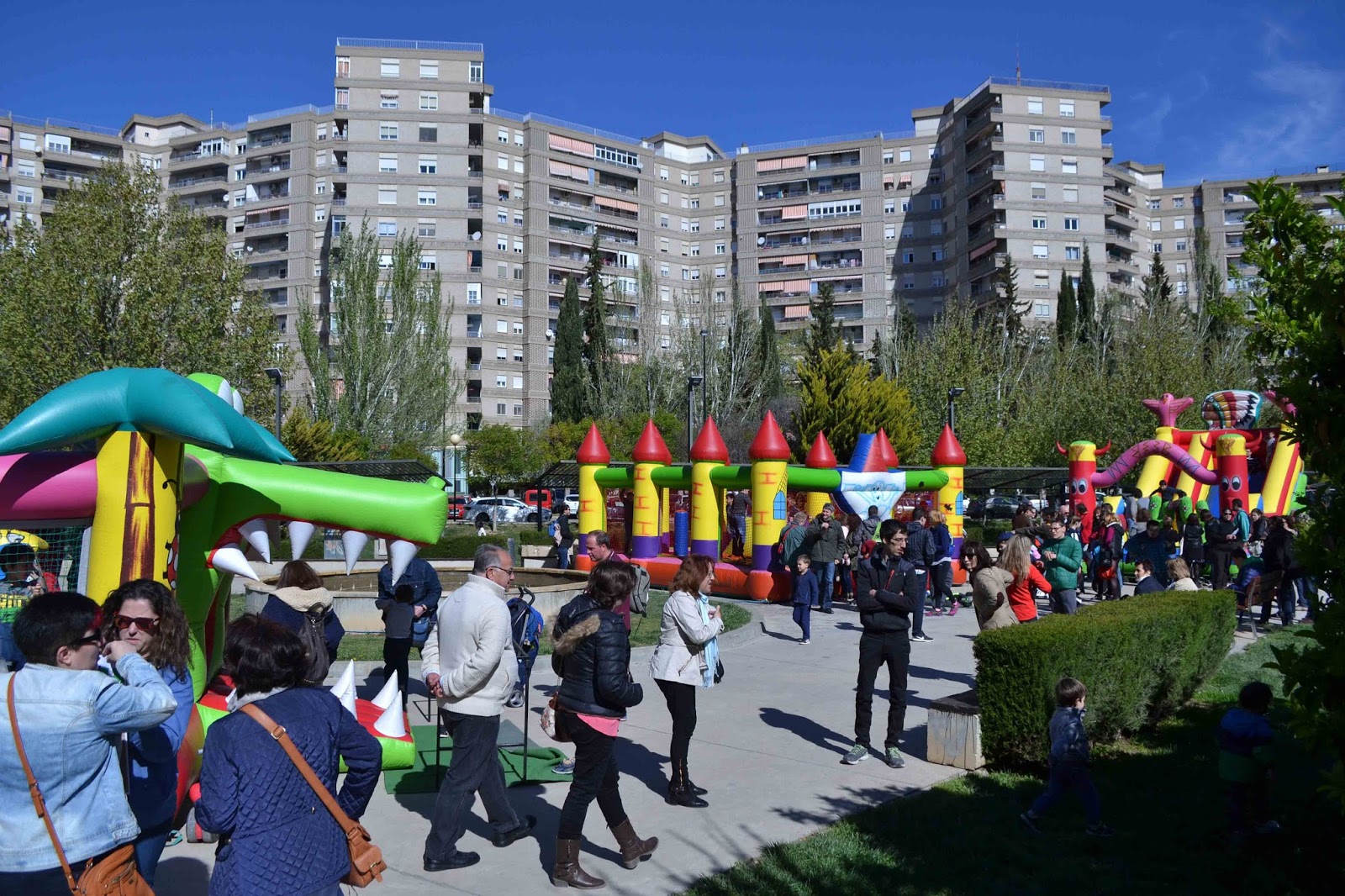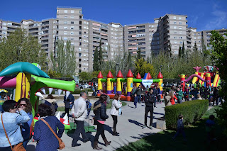 Tuvimos hinchables, pintacaras, personajes de animación y el apoyo de ACUPAMA (asociación que gestiona los Huertos Sociales y Urbanos de Parque Goya ) con sus talleres y productos de agricultura ecológica.
