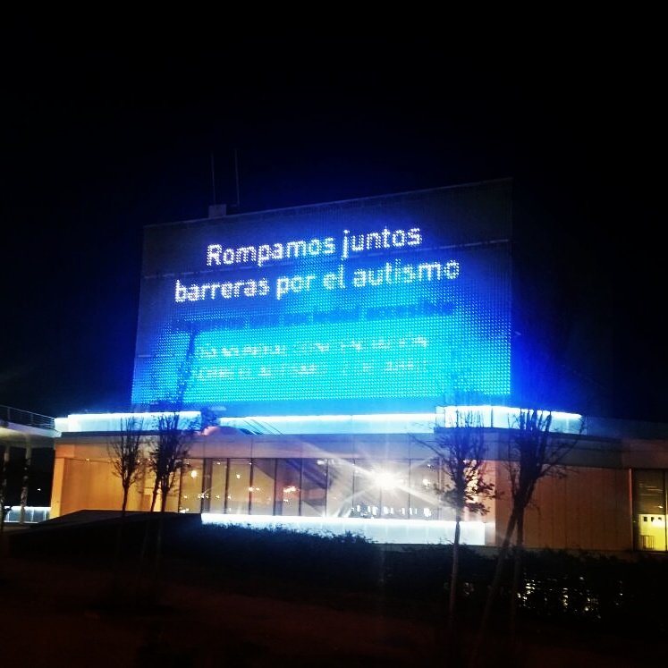 La noche de 1 al 2 de abril, se iluminó de azul la fachada digital de Etopia con el lema «rompamos juntos barreras».