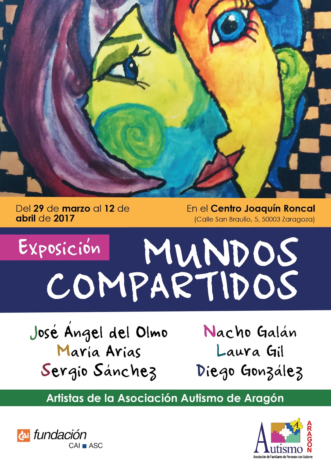 Os recordamos que podéis visitar la exposición «Mundos Compartidos» hasta el 12 de abril en el centro Joaquín Roncal de Zaragoza. Allí podréis ver de primera mano la creatividad de nuestros seis artistas: José Ángel del Olmo, María Arias, Sergio Sánchez, Nacho Galán, Laura Gil y Diego González.