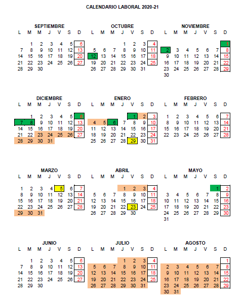 Por último, os dejamos el calendario laboral que tendremos durante este curso por si necesitáis consultarlo: