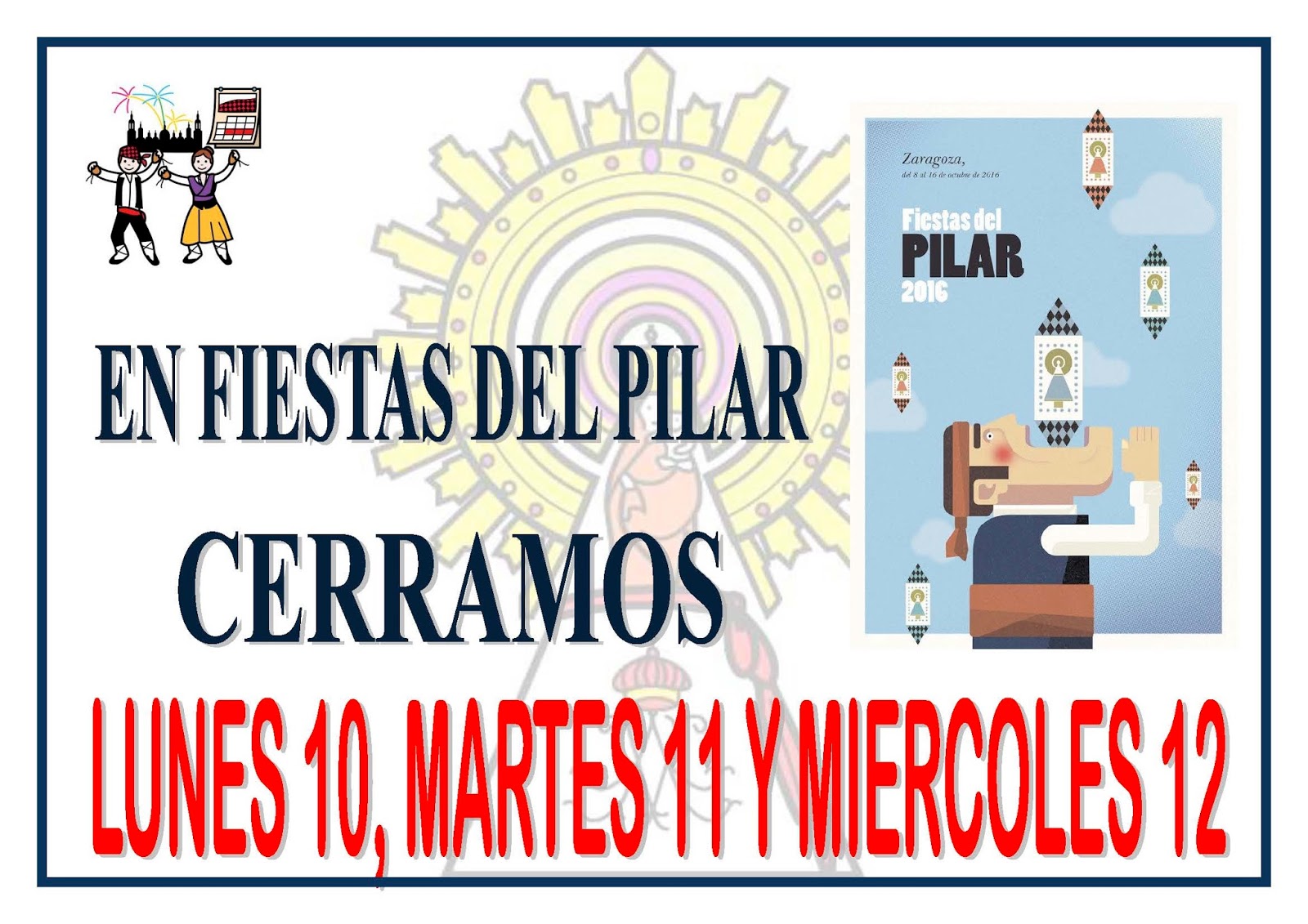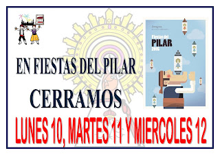 Este curso, con motivo de las fiestas del Pilar, en la Asociación vamos a cerrar los mismos días que los chicos y chicas tienen vacaciones en el colegio.