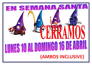 Se acerca el final del segundo trimestre y con ello las vacaciones de Semana Santa. Como normalmente sucede, la Asociación sigue el calendario escolar, así que permaneceremos cerrados desde el lunes 10 de abril hasta el domingo 16 de abril.